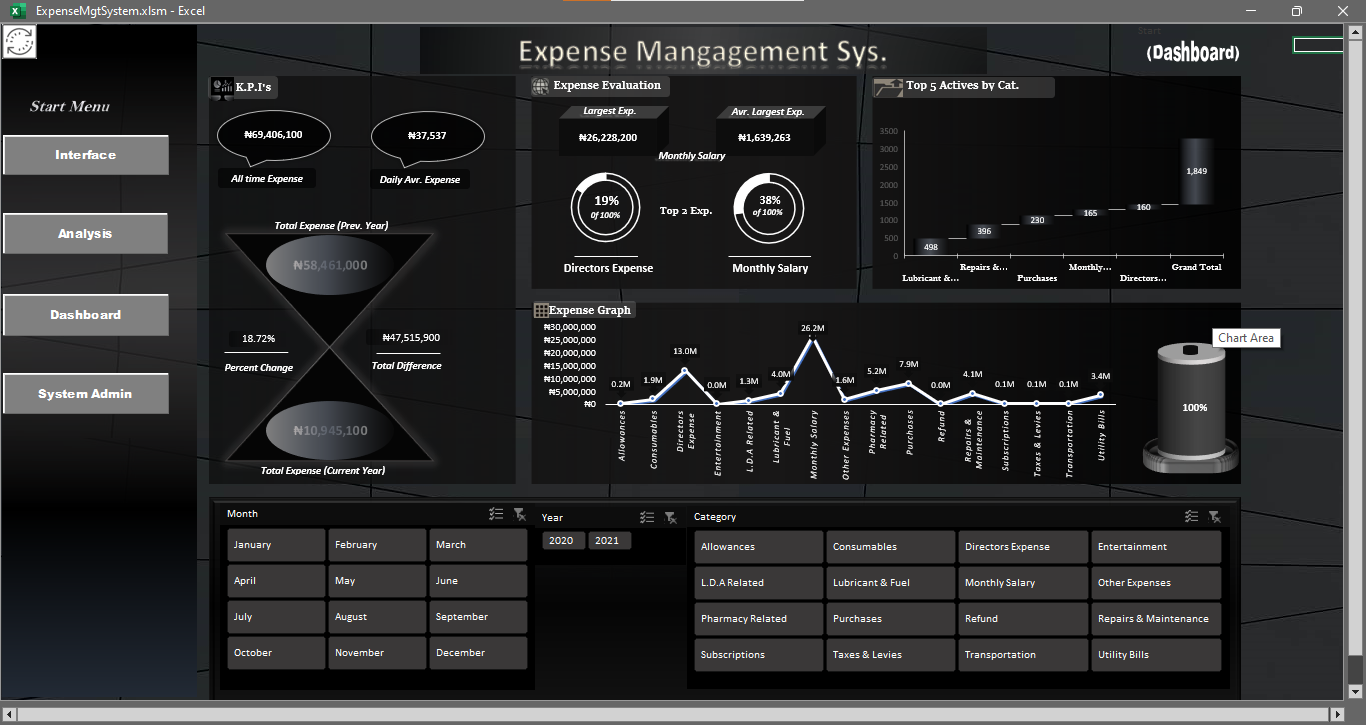 The Expense Management System is a VBA Excel-based project designed to provide organizations with an efficient and user-friendly solution for managing expenses. The system allows users to enter, track, and analyze expenses through a custom userform and real-time analytics dashboard. It also offers the capability to import expense records from other spreadsheets and provides extensive data visualization for better decision-making.