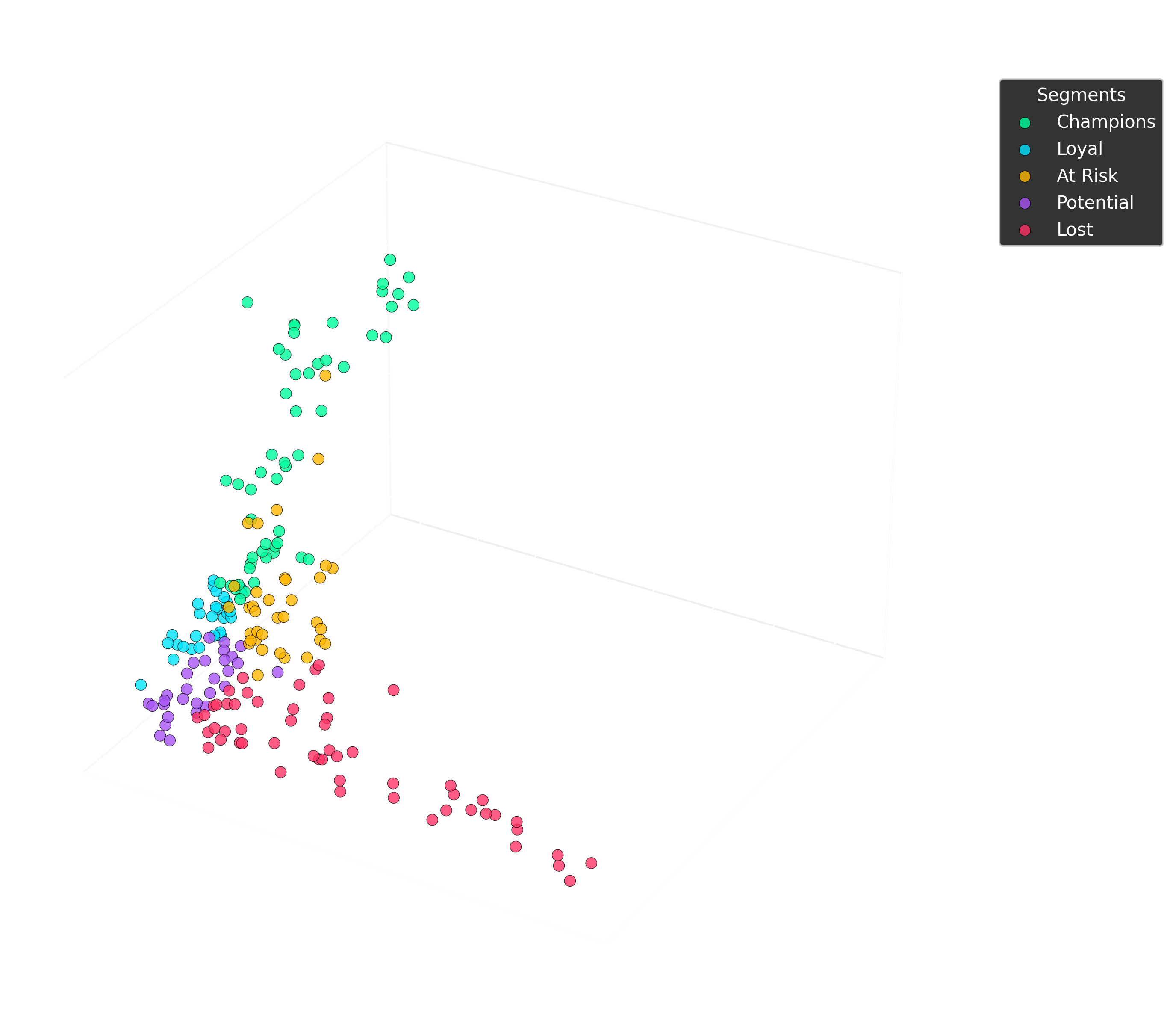 | k (clusters) | 5 | Champions · Loyal · At Risk · Potential · Lost |