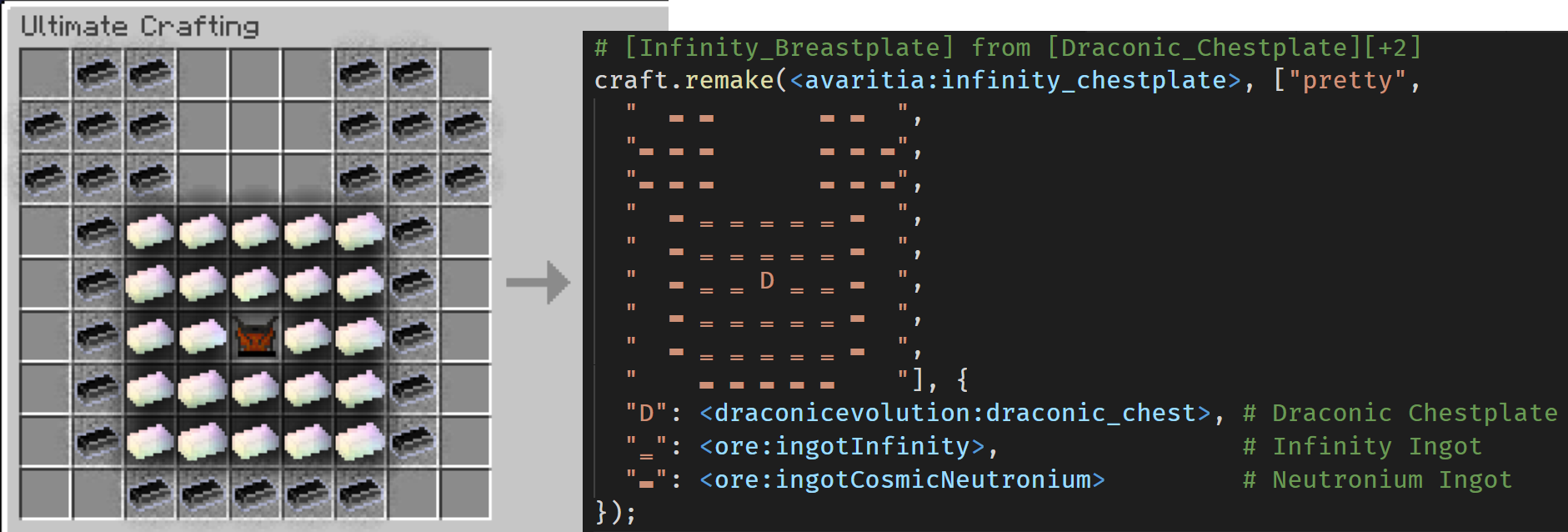 });To lay out recipes you can use any 3x3 inventory (like Crafting Station from Tinker's Construct), or table of any tier from Extended Crafting: