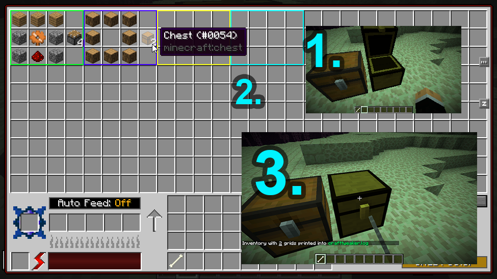 - Lay out your crafting recipes in an block inventory (