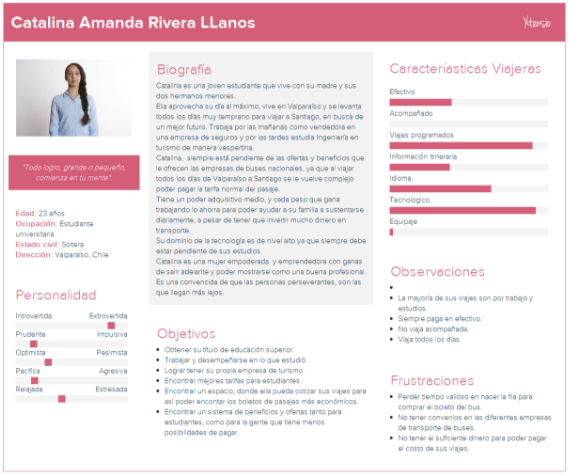 Donde pudimos concluir que la mayoría de las personas que viajan son turistas nacionales e internacionales. Que tienen la necesidad de viajar y que no tienen un lugar donde poder encontrar información acerca de su destino.
