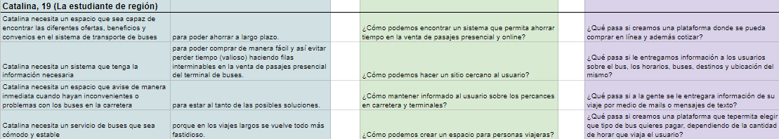 Luego de haber identificado a cada uno de los arquetipos, con sus características más importantes, se procedió a realizar el Problem Statement para definir cuáles podrían ser las posibles soluciones para el proyecto a realizar, mi rol fue analizar el personaje de la estudiante: