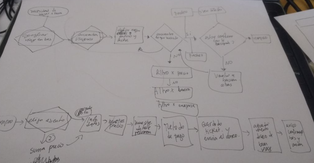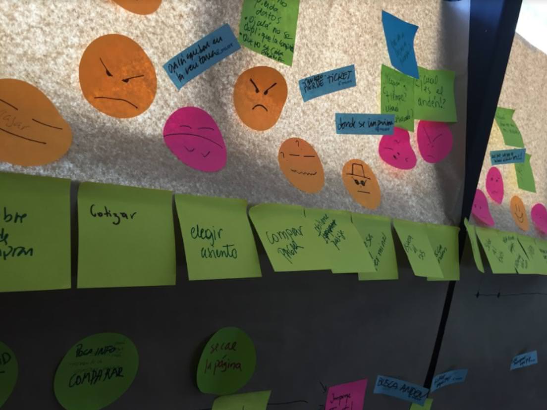 Luego hicimos un customer journey para analizar la experiencia del usuario al comprar un pasaje, todo lo que haría él en la plataforma y ver cuáles son los puntos claves y momentos de frustración para luego analizar y verificar cuáles son los vacíos que existen en el servicio.