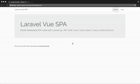 Starter Boilerplate SPA made with Laravel 5.6, Bootstrap 4, JWT Auth, Vue 2, Vue-router 3, Vuex 3, Axios & ❤️
