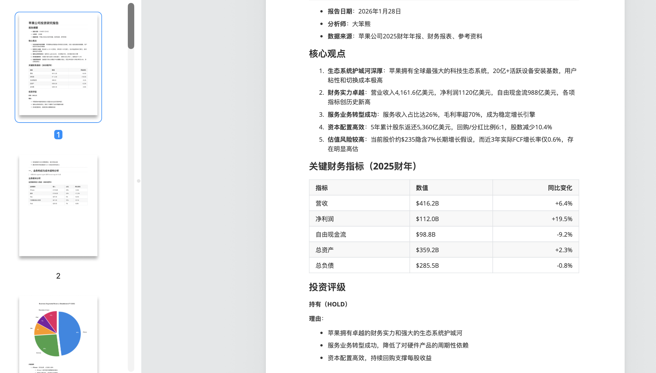 Claude Code prompt:ć€Œē ”ē©¶č‹¹ęžœå…¬åøļ¼Œē”Ÿęˆäø€ä»½äø­ę–‡ęŠ•čµ„ęŠ„å‘Šć€
