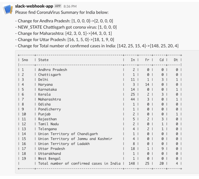 Scans the official Government website and throws notifications to Slack when new cases arise (Ministry of Health and Family Welfare)