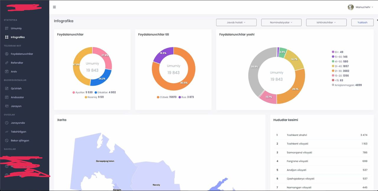 - Vazifalar yuklash va shu orqali foydalanuvchilar ma'lumotlarini to'ldirish